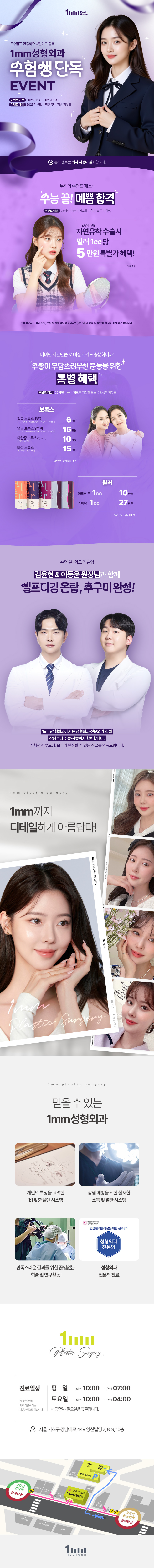 1mm성형외과의 이벤트들을 안내드립니다.